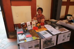 Der kleine Mikhael half seiner Oma am Informations- und Bücherstand.